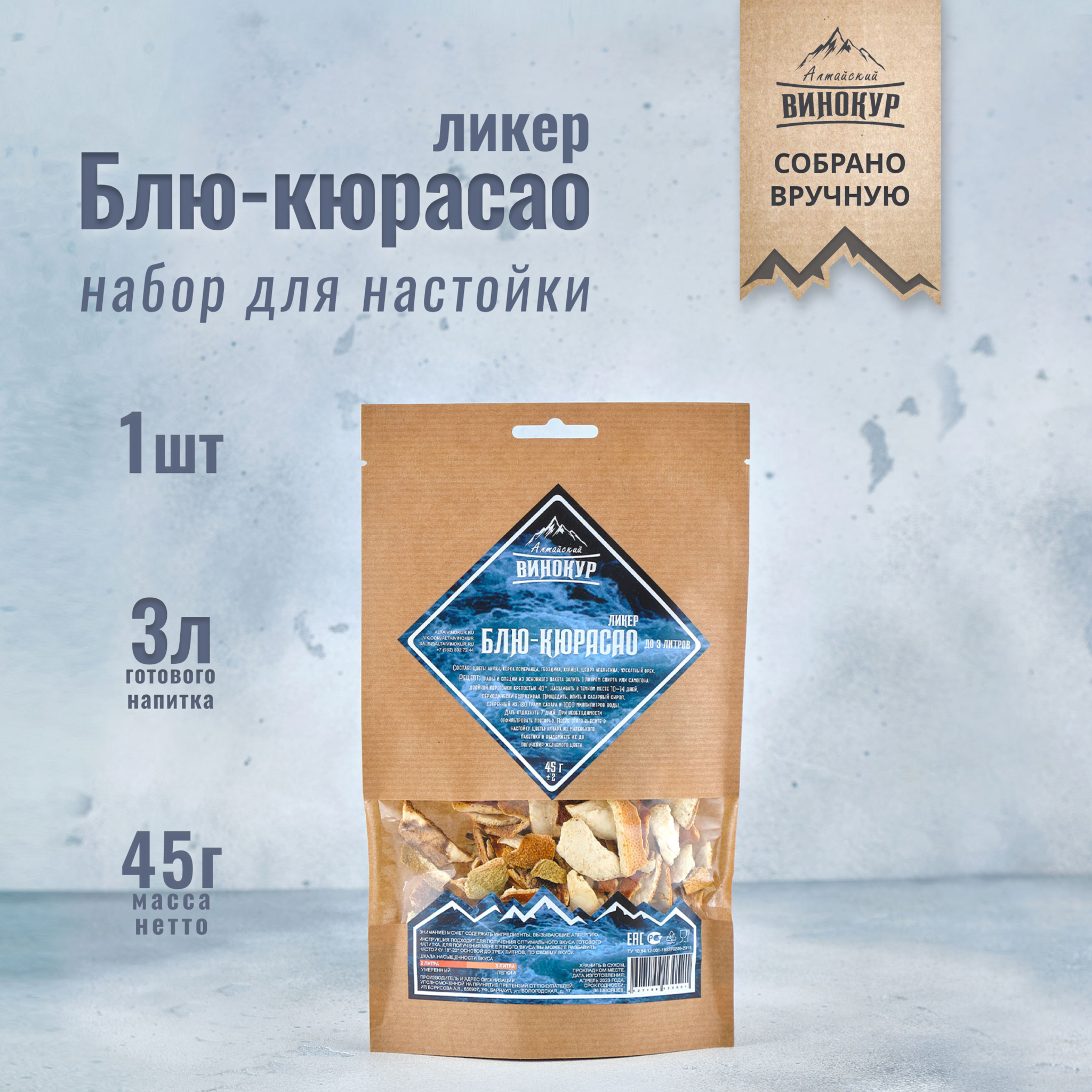 Рецепт: набор «Блю Кюрасао»залить 1 литром спирта или самогоном двойной перегонки крепостью 40%. Настаивать в темном месте 10 — 14 дней, периодически встряхивая. Процедить, влить в сахарный сироп, сваренный из 180 грамм сахара и 1000 миллилитров воды. Дать отдохнуть 7 дней. При необходимости отфильтровать повторно. После этого внесите в настойку цветы анчана из дополнительного пакетика (идёт в комплекте с набором) и выдержите их до получения желаемого цвета.