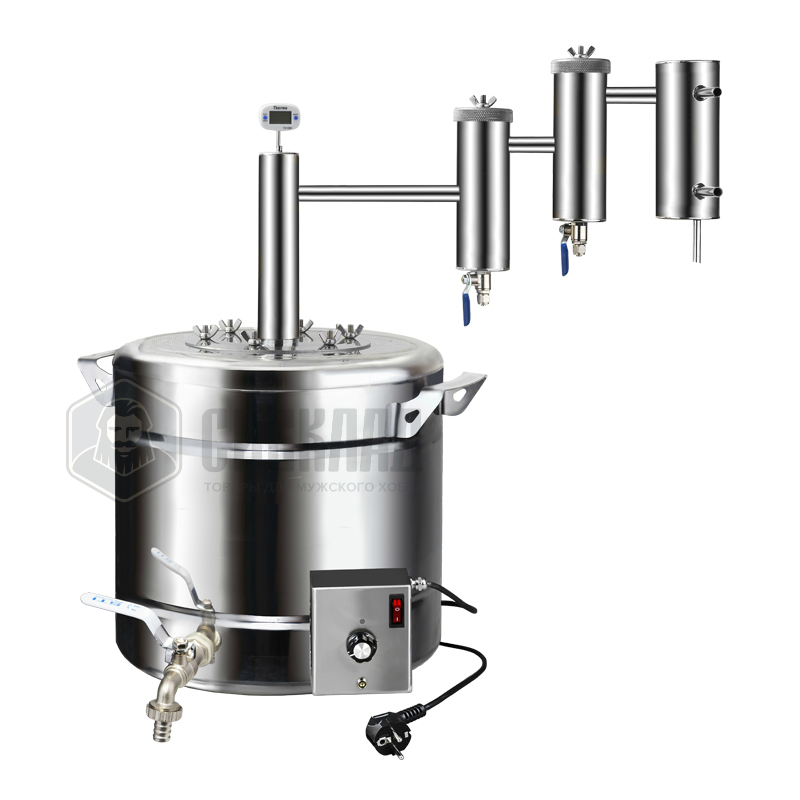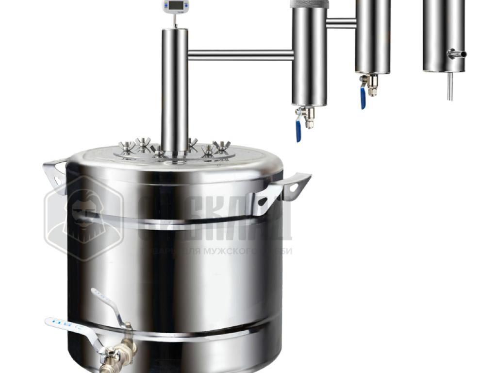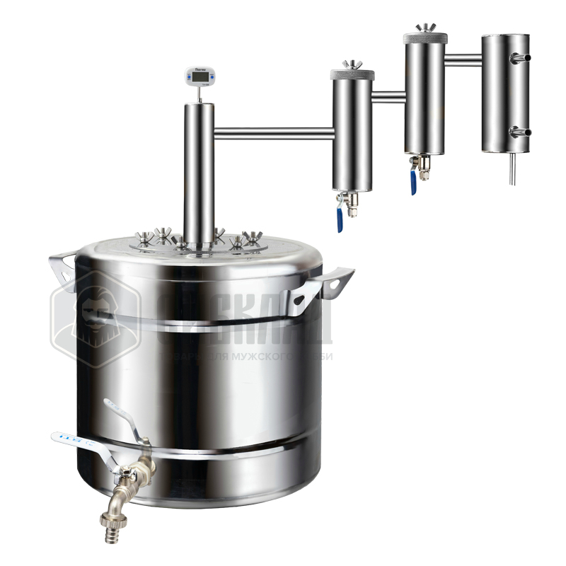 • Встроенным термометром для контроля температуры пара в царге, в которую по желанию можно установить регулярную насадку Панченкова для повышения крепости конечного продукта