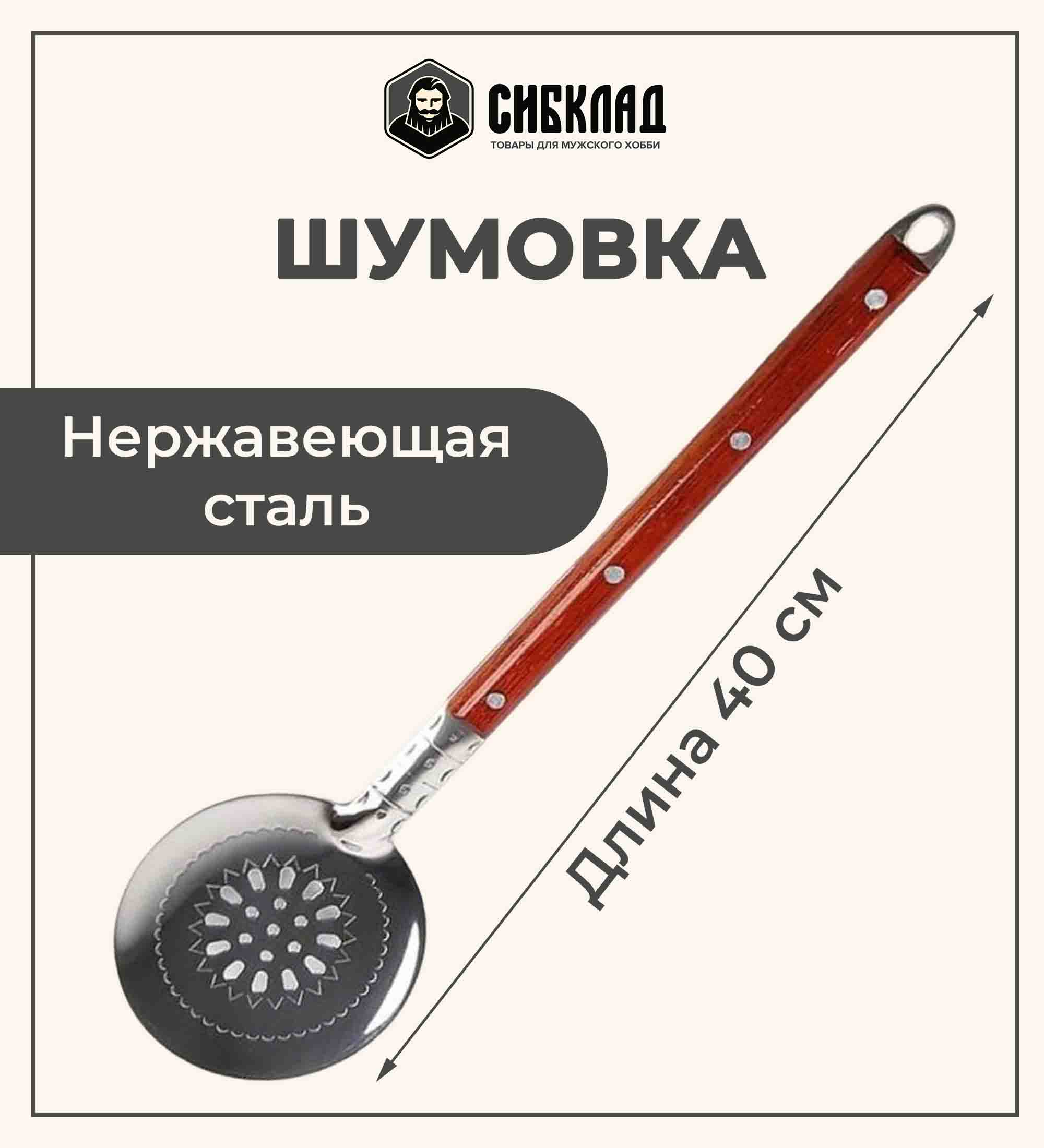 Шумовка 40 см, нержавеющая сталь, деревянная ручка
