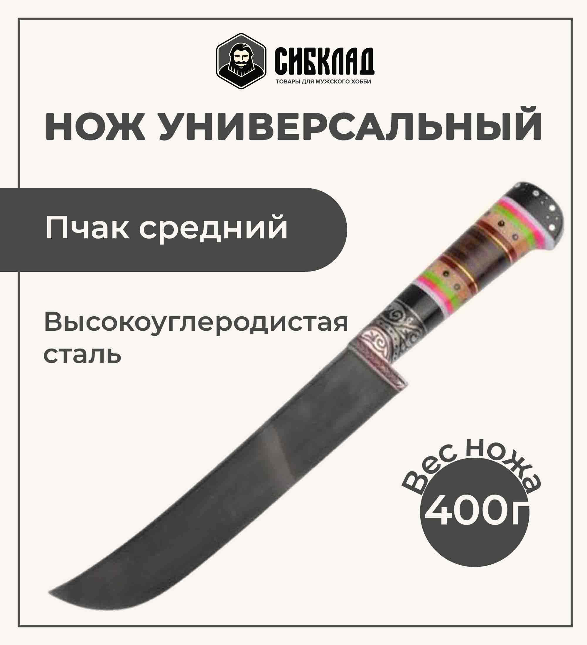 Нож Пчак средний Ёрма гарда гравировка ШХ15, 16-18 см, арт,7