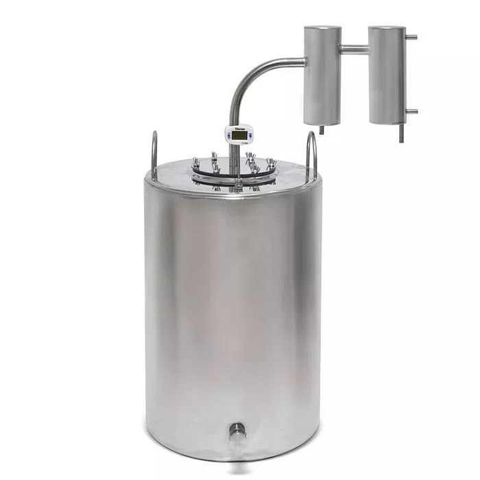 Дистиллятор бытовой ЯКУТКА 23 Классический аппарат для опытных и еще только начинающих самогонщиков. Самый простой и надежный аппарат в линейке. Легкий в сборке, имеет большой объем сухопарника и хладагента холодильника. Оснащен сухопарником для качественной очистки перегоняемого продукта от сивушных масел. Со скоростью до 4 литров в час, он выдает качественный этиловый дистиллят крепостью до 80 процентов. Бак аппарата снабжен термометром, а все его элементы сделаны из нержавеющей стали. Дно ферромагнитное, подходит для любых нагревательных поверностей.