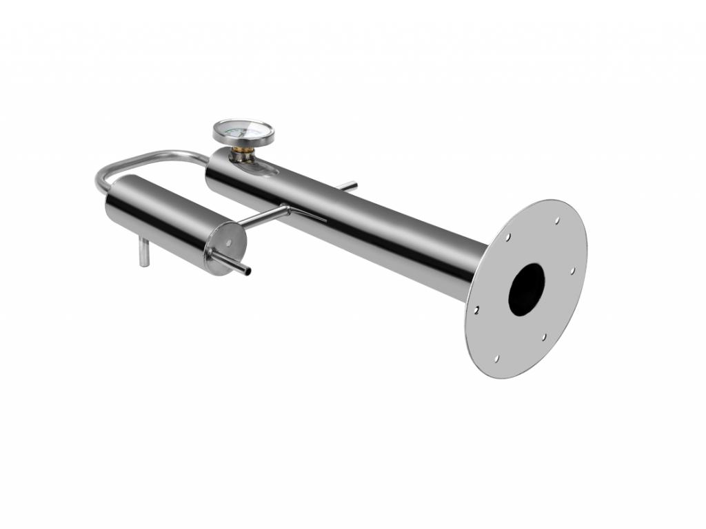 • Перегонный куб с ребрами жесткости и широкой горловиной отличается удобством и надежностью. Фланец плотно прижимается к основанию при помощи резьбовых барашков через прокладку из пищевого силикона, которая не боится высоких температур