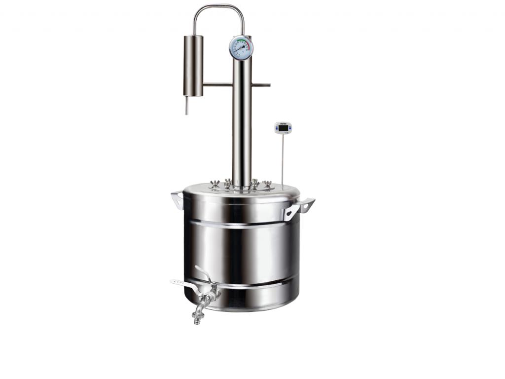 Наличие термометра, который неслучайно установлен именно в верхней части над дефлегматором, позволяет очень точно отделять ненужные фракции – головы и хвосты. «Тело» самогона при этом остается чистым, а крепость продукта может достигать 70% уже с первого перегона. Все, что от вас потребуется, это правильно приготовить брагу и залить ее в перегонный куб.