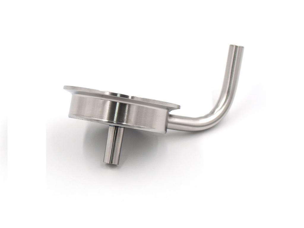 Съёмный носик подключается к основному или дополнительному охладителю с выходами под кламп DN 3. На стыке используется силиконовая прокладка. Соединение фиксируется хомутом. На край канала, по которому стекает дистиллят, натягивается силиконовый шланг.