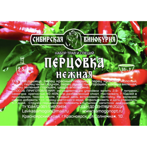 Набор трав и специй "Перцовка нежная" Сибирская винокурня