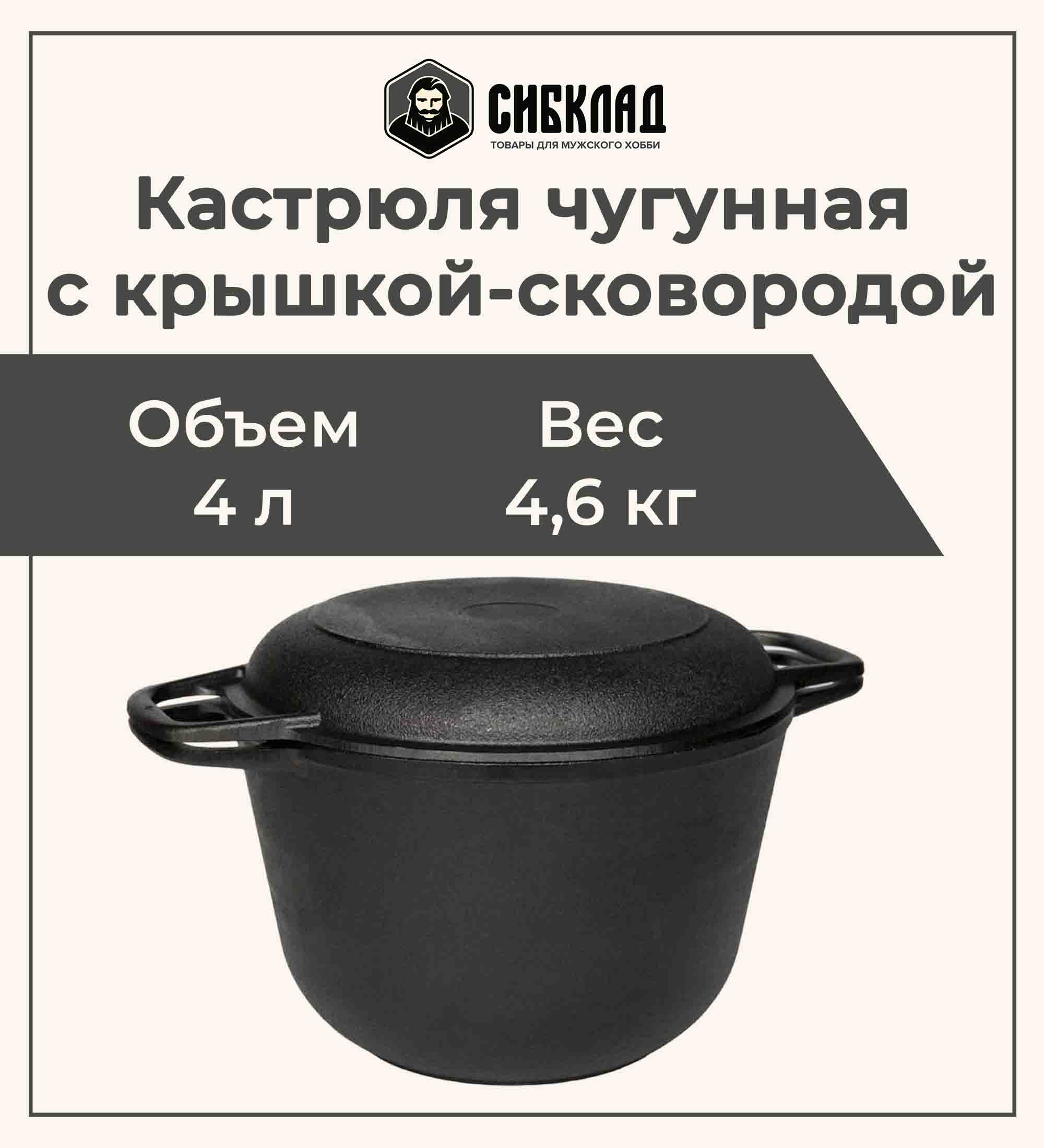 Кастрюля чугунная с крышкой-сковородой, 4 литра, ТМ Гардарика