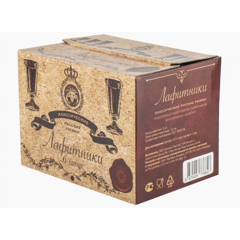 Тематическая подарочная коробка Рюмка-лафитник граненая 35 мл 6 штук подойдет самым искушенным ценителям. Классическая форма граненой рюмки (лафитника). Рюмка имеет 10 широких граней и точеную ножку, как дань традициям.