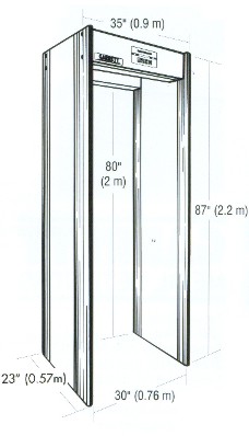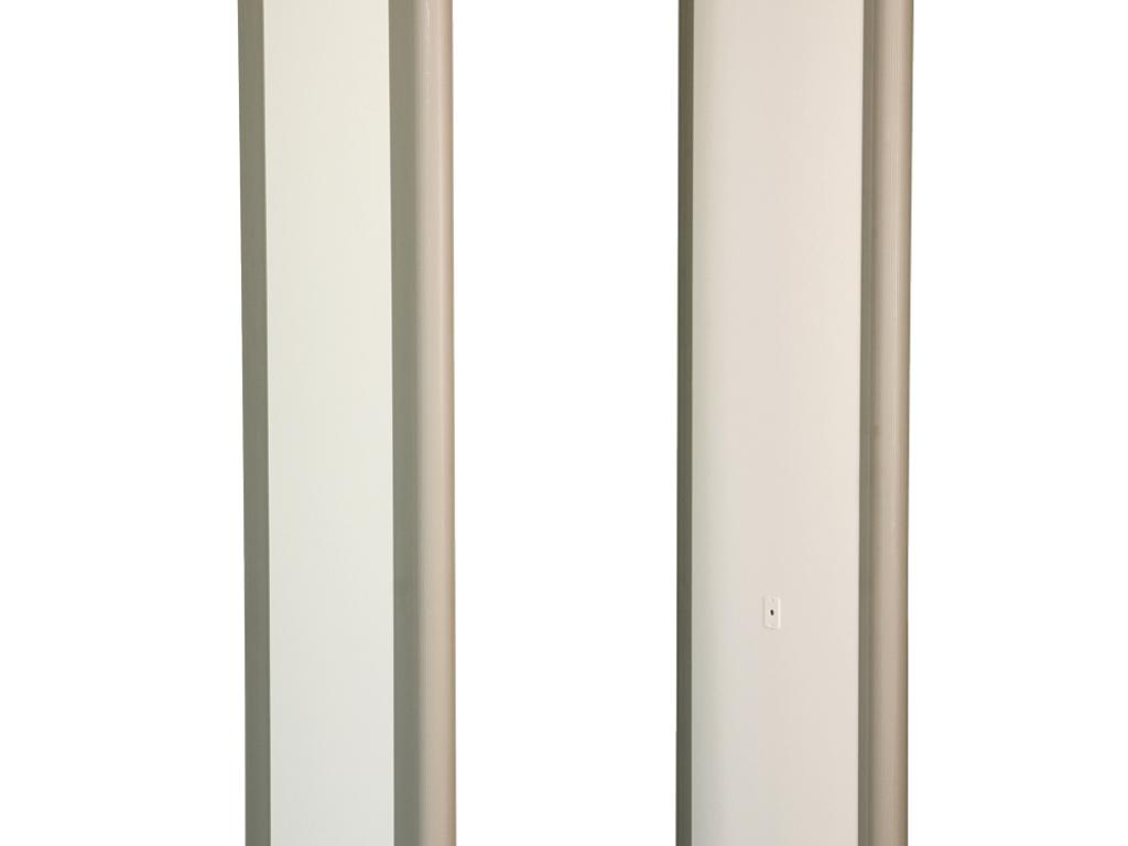 Металлодетектор выполнен в виде классической арки, состоящей из двух вертикальных панелей, расположенных на расстоянии 76 см друг от друга. Блоки управления и индикации находятся в верхней секции арки, что позволяет избежать внешних воздействий на кабели и возможность нежелательного вмешательства. Устойчивые к механическим повреждениям панели с ударопрочными торцевыми вставками. Блок управления и поперечная штанга из упрочненного алюминия. |
