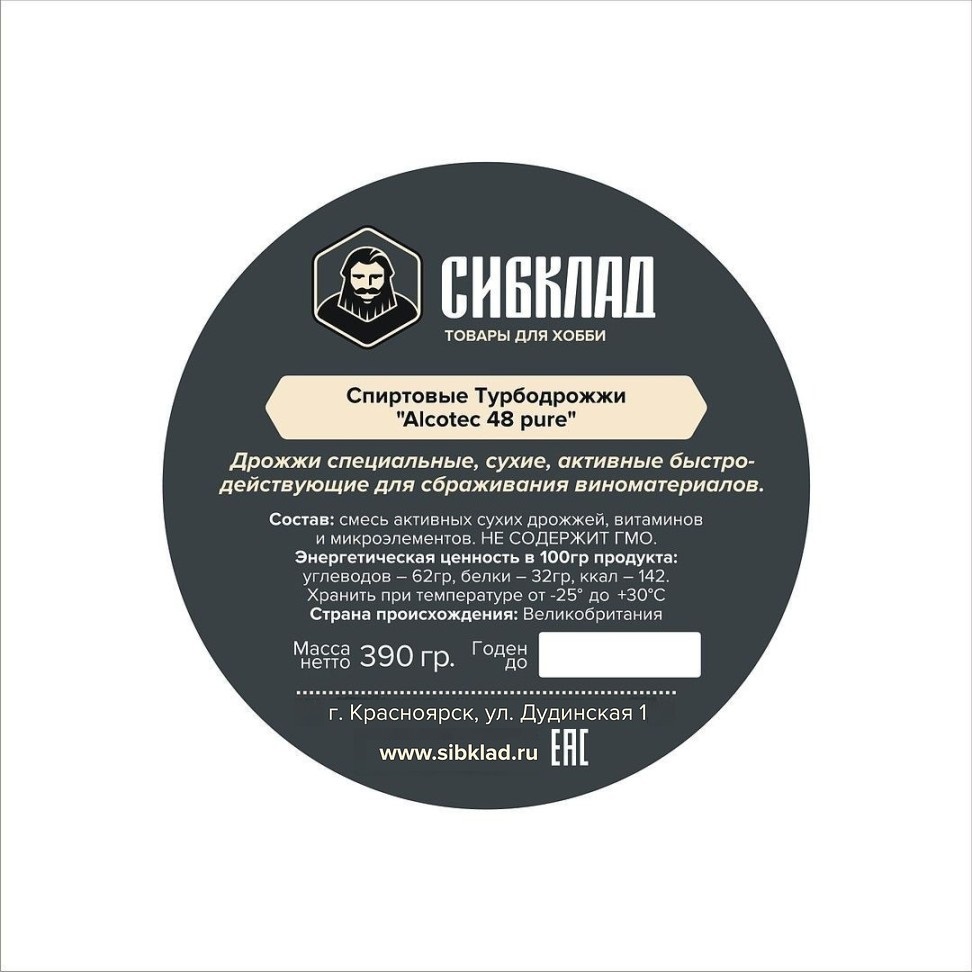 Спиртовые турбо дрожжи «Alcotec 48», 390 г